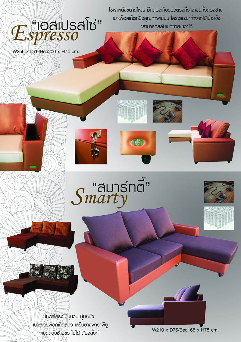 โซฟา: หน้ากว้างรวม 280 ซม.X ลึกรวมเบด 183 ซม. X สูง 85 ซม.